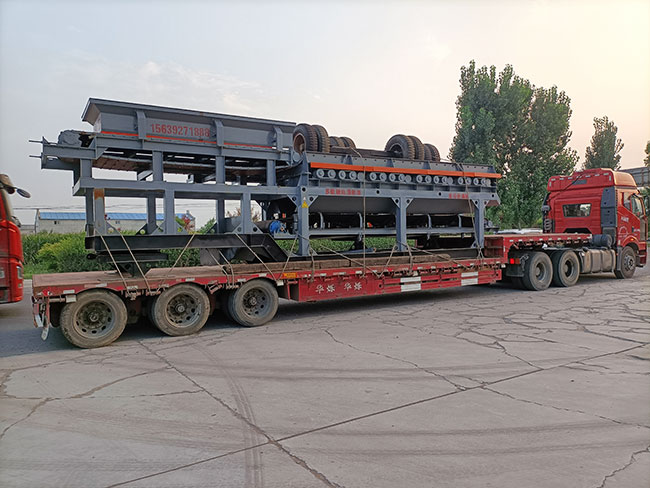 該機主要包括:鏈板式喂料機、滾軸篩、皮帶輸送機、移動車架、電控系統(tǒng)等組成。